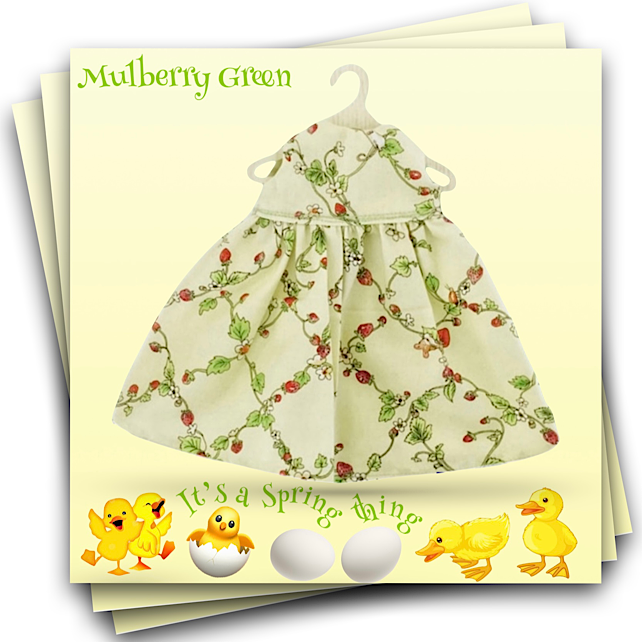 A beautiful little dress in a lovely ladybirds print to fit the Mulberry Green characters. The dress is made from best quality cotton, has a full skirt and a lined bodice. It matches the ladybird cardigan.