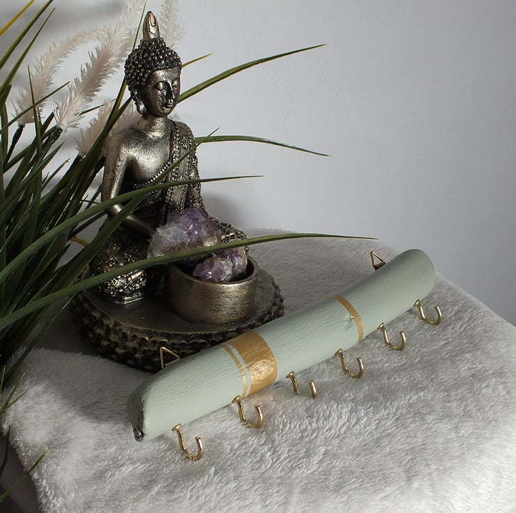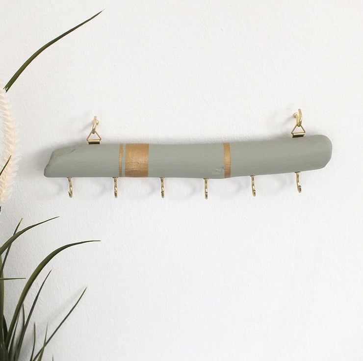 This wall decor with hangers is hand painted by me and collected whilst walking in the forest. I made it for jewelleries, but you may wish to use as a key holder.
