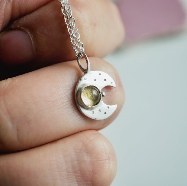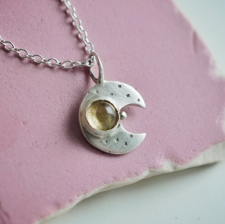 Small eco silver and citrine moon necklace.