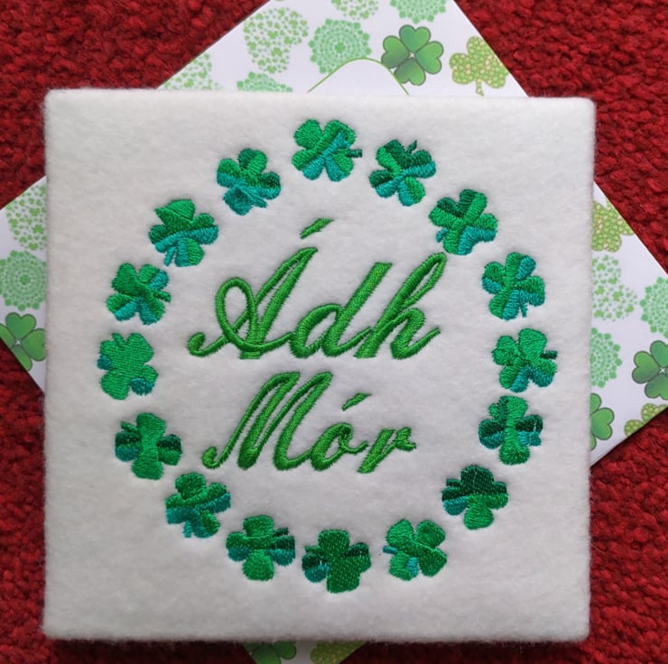 Handmade Good Luck Gaelic Card Adh Mor (Good Luck) Embroidered Card