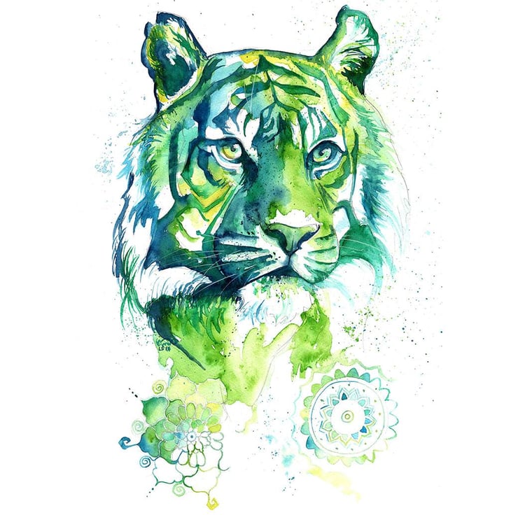 Green was probably my least used paint, and I wanted to set myself a challenge to do a painting using only this colour - I may have cheated a little by adding a turquoise! Kali was the result of that experiment, and I love how she turned out!