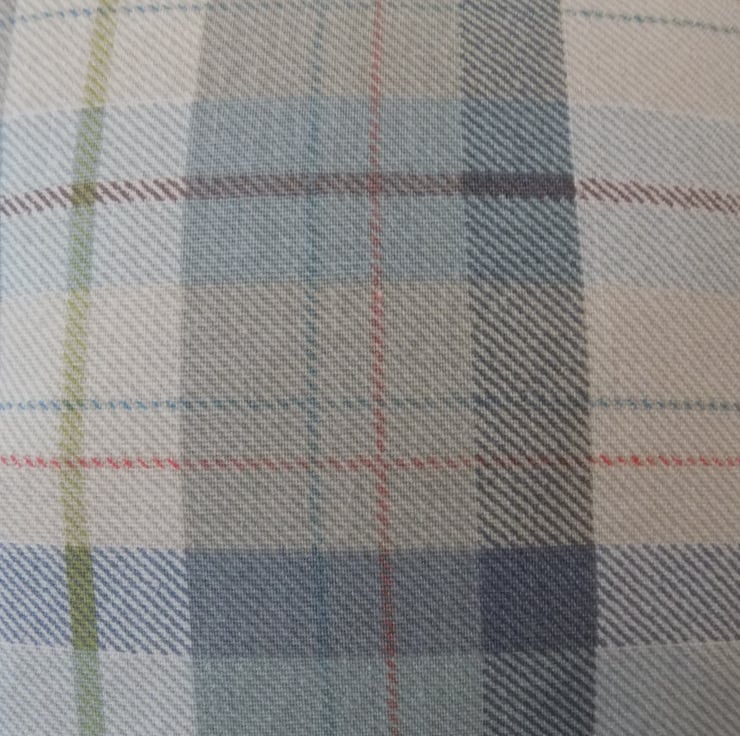 This cushion cover is made from a superior quality cotton linen fabric by Prestigious Textiles called ‘Munro’ and features warm and soothing soft pastel colours of cream, pale blue, beige and green.