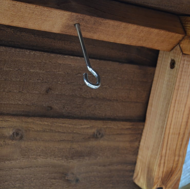 There are two pre-drilled counter sunk holes on the rear support to enable easy fixing and the tray has a pre-drilled drainage hole in each corner. We have fitted a sturdy hook to allow the hanging of fat/seed balls etc.