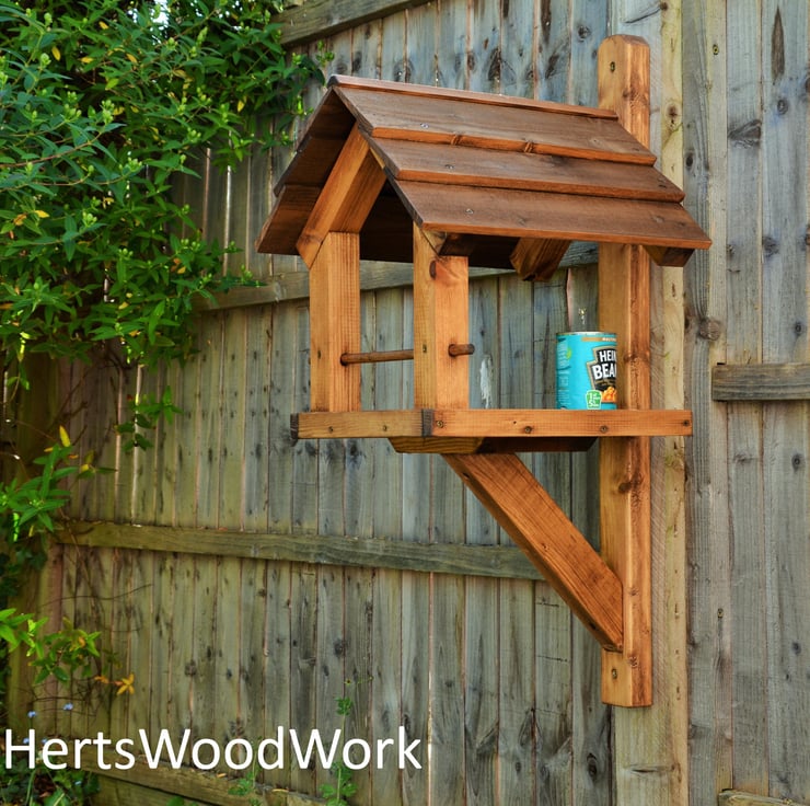 Made here in the UK, a substantial quality handmade wall/ post/ tree mountable bird feeding table, which we construct using only screws.