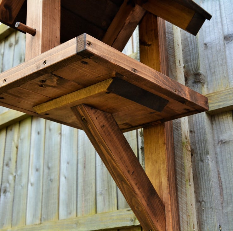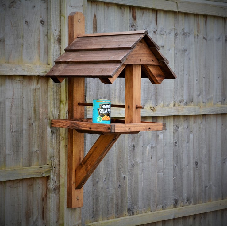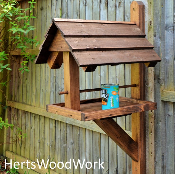 Made here in the UK, a substantial quality handmade wall/ post/ tree mountable bird feeding table, which we construct using only screws.