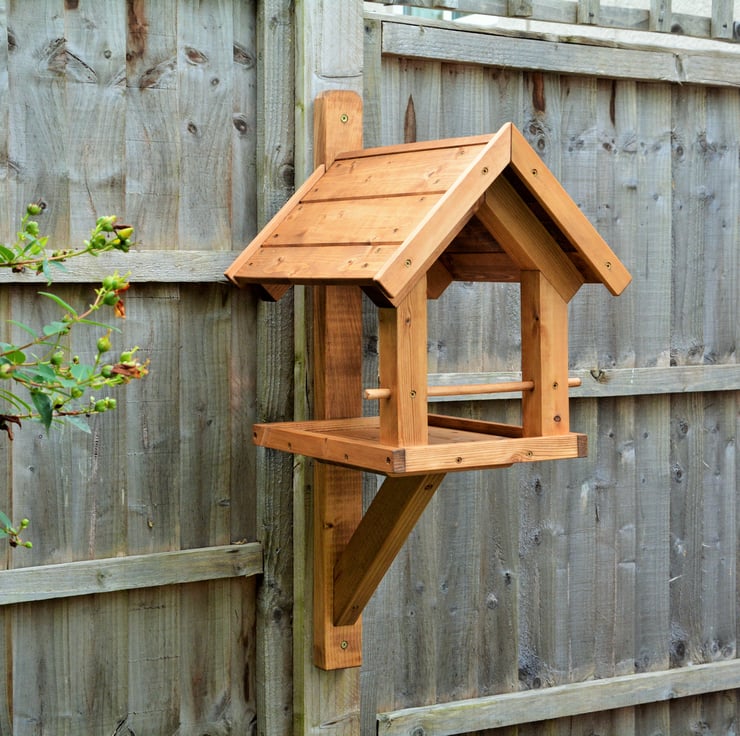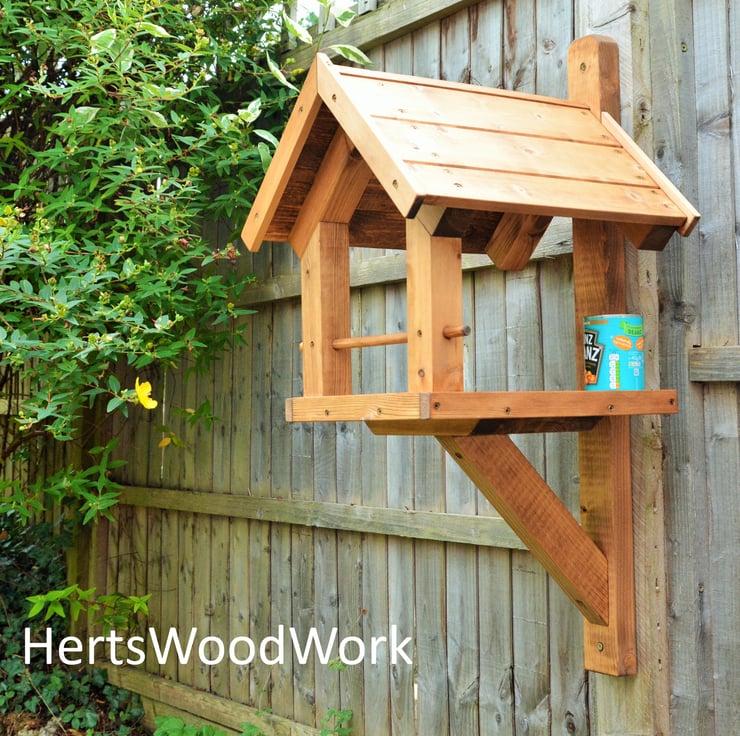 Made here in the UK, a substantial quality handmade wall/ post/ tree mountable bird feeding table, which we construct using only screws.