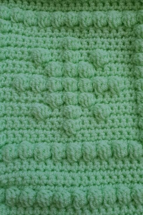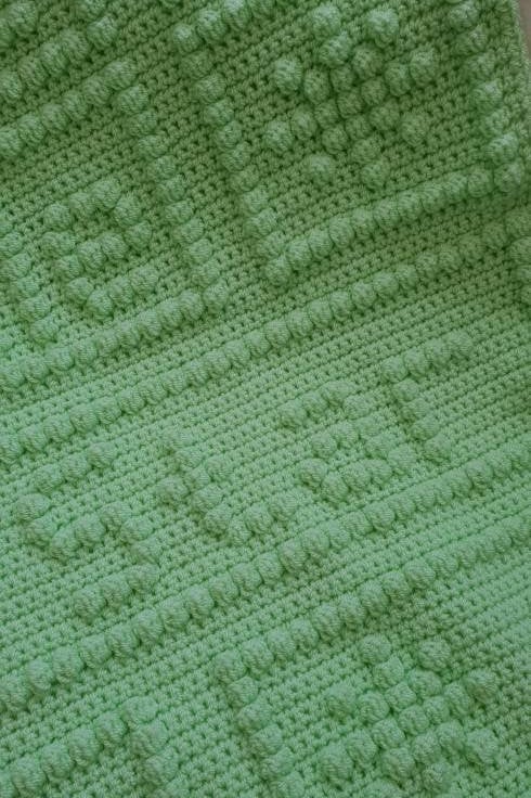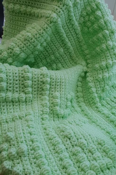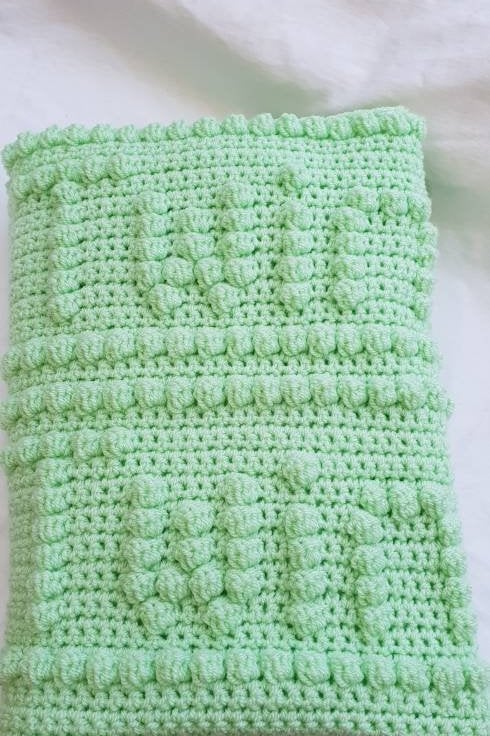 This listing is for a handmade baby blanket. It has been crocheted using the bobble or popcorn stitch and has the words "Twinkle twinkle little star" on it along with some stars! It is pale green and is crocheted in DK weight yarn. Note the colour is very difficult to photograph but the first photo is a truer representation of the actual colour. The blanket is lovely and soft and has a nice drape.