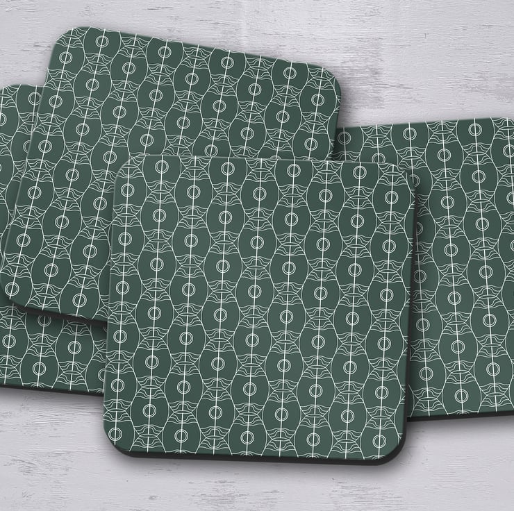 This dark green and white art nouveau coaster collection is available as a set of 4.