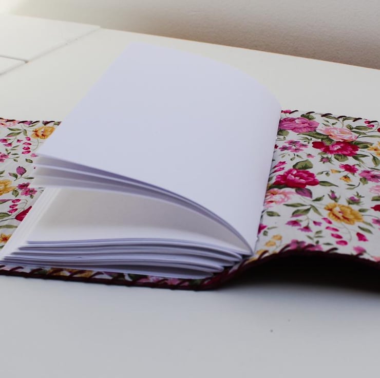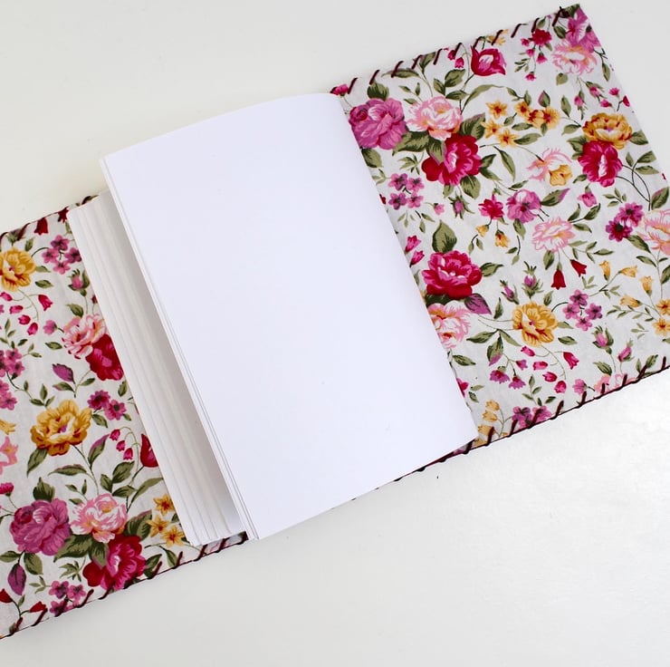 All lined with a gorgeous floral (or non floral) fabric and filled with plain paper, lined paper, recycled paper or watercolour paper.