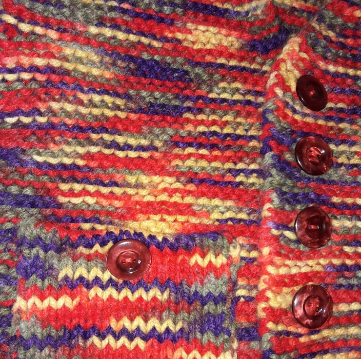 Cardigan fastens with 5 buttons.
