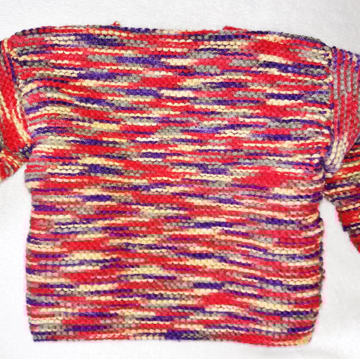 Red, yellow, purple mix multi stripe pattern.