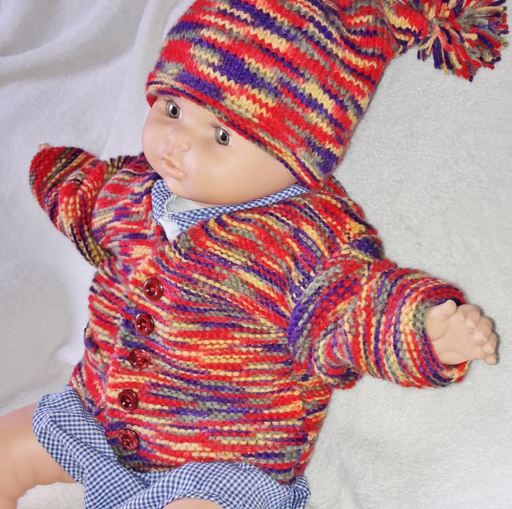 Keep your baby warm and cosy on those cooler days with this adorable baby cardigan and hat outfit.
