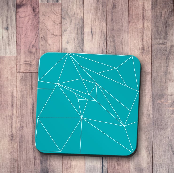 This turquoise and white line geometric design coaster collection is available as a set of 4.