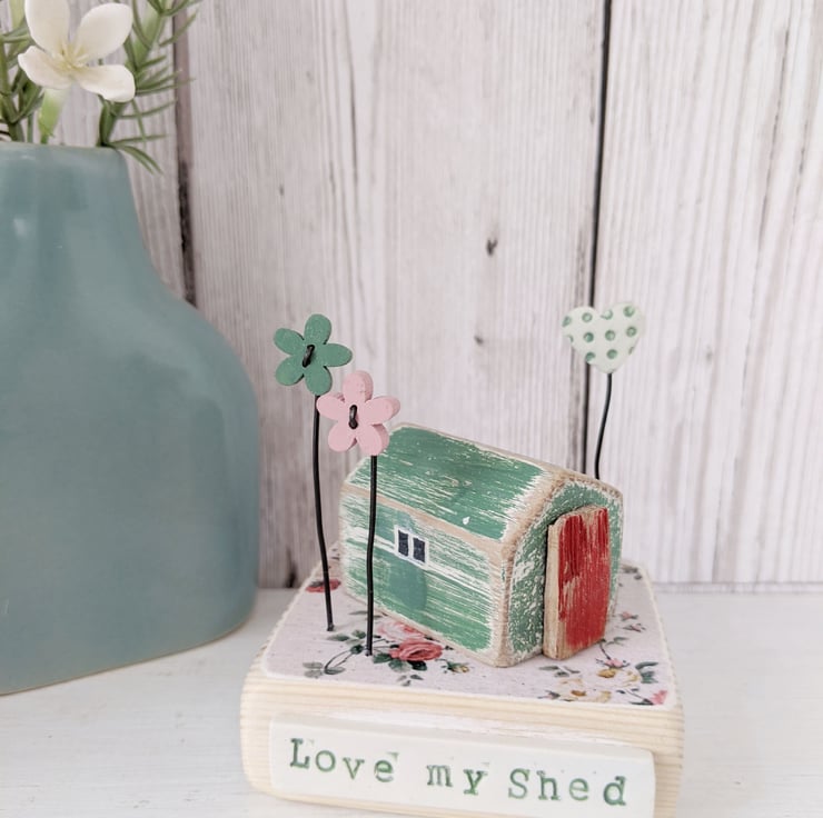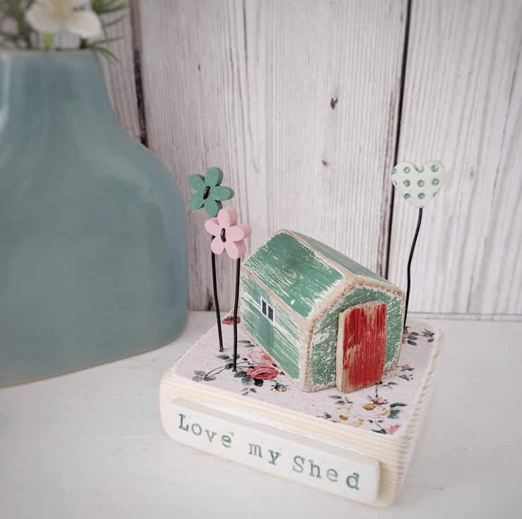 The little hand stamped clay sign on the front says 'Love My Shed'