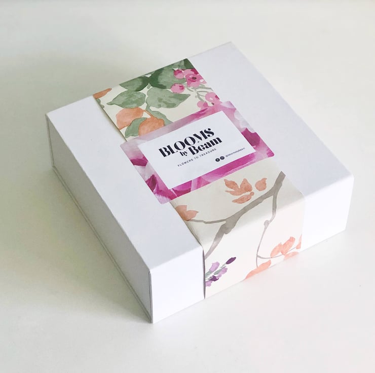 This boxed bouquet is approximately 18cm by 18cm and 7cm deep