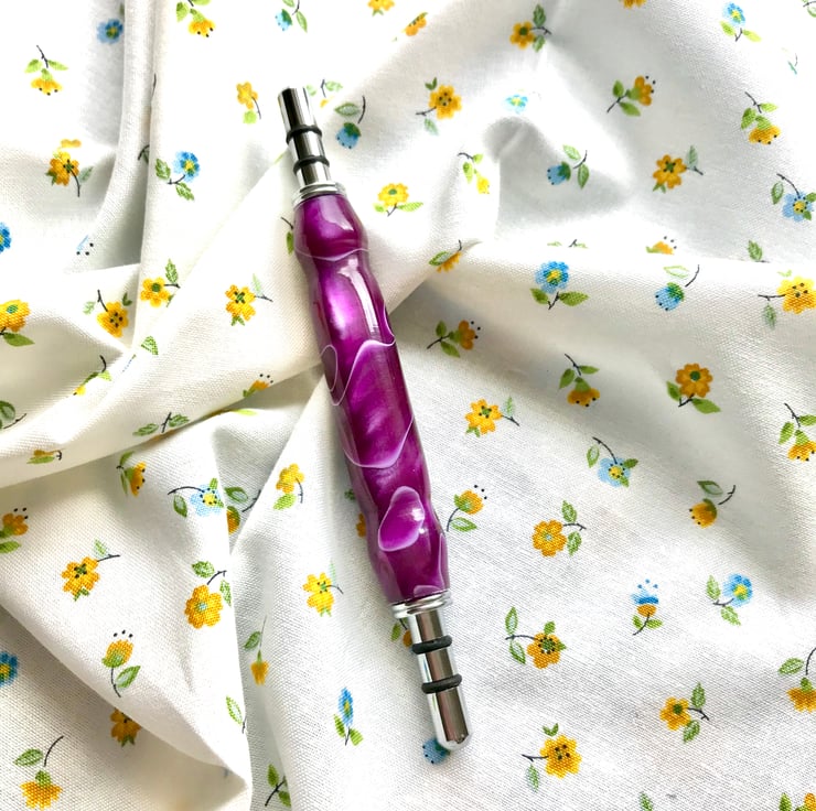 Made from a vibrant purple acrylic with chrome-coloured hardware. The tools simply pull out and plug back in to the brass lined tube for ease of use and safe storage.