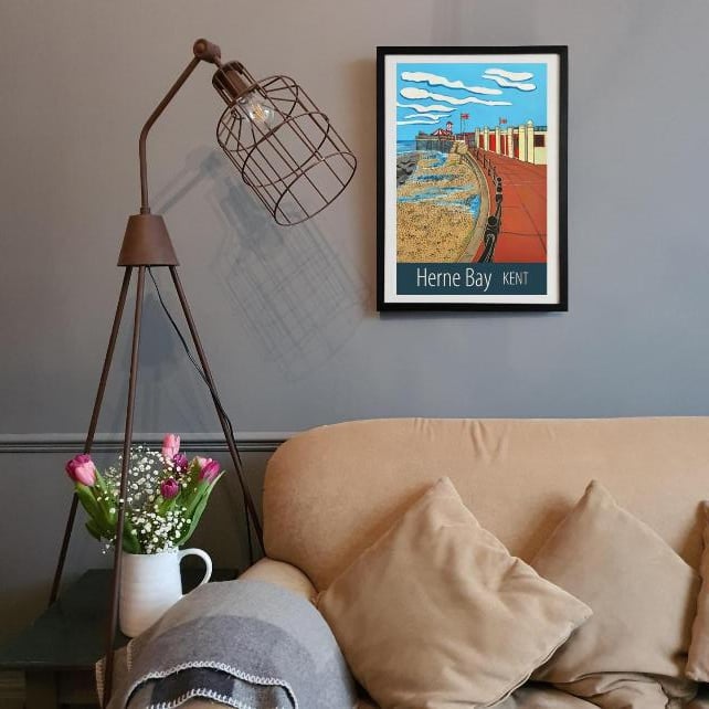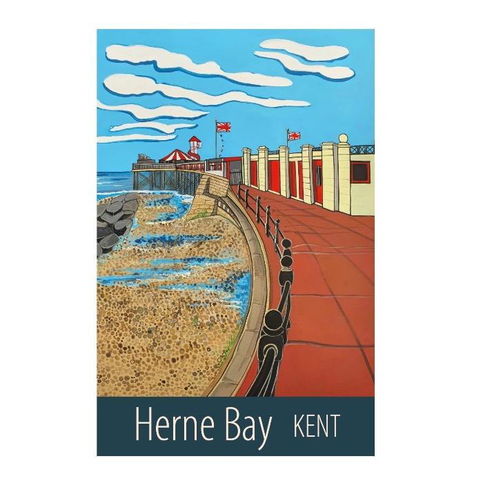 A contemporary travel poster style print of the pier at Herne Bay, Kent, from my own original acrylic painting.