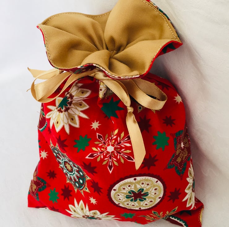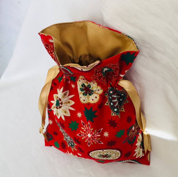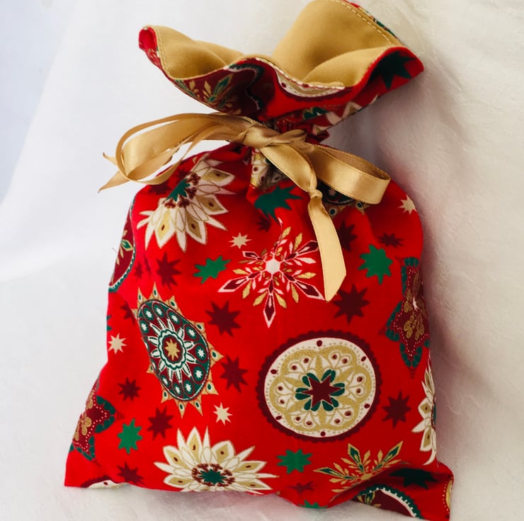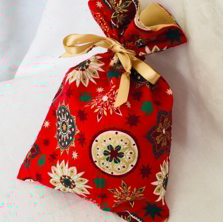 Why not present your special Christmas gift in a beautiful fabric bag, that can be used again and again. A gift inside a stunning bag, that can be reused, 2 gifts in one. Why not use the bag to fill with lots of goodies and treats, or a selection of scented candles and wax melts. A lovely bag for all kinds of uses.