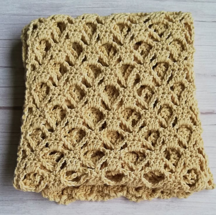 Made with high quality Rowan Pima cotton, this pretty, pale sand, crocheted scarf drapes beautifully. It is soft, light and long, so will wrap twice around your neck then tied or can be wrapped once and worn lower at the neck, with the ends tied or left.