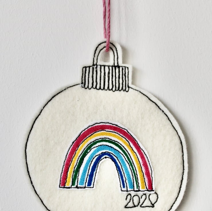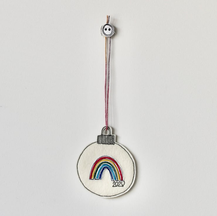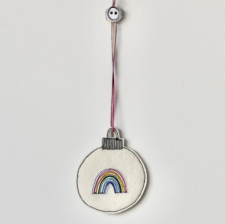 Please note that the rainbow cotton string colour will differ slightly from the photographed bauble, the fabric button is not part of the design and this listing is for one bauble.