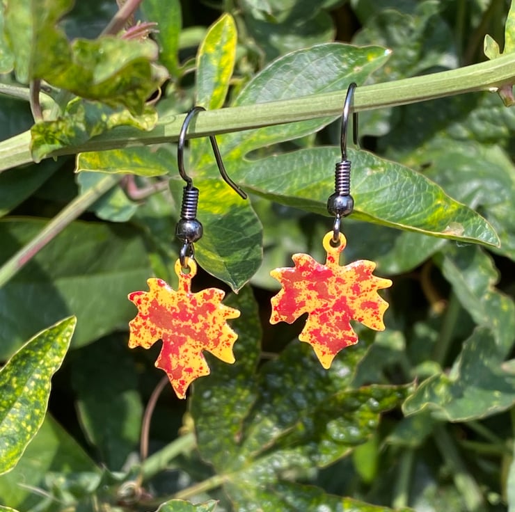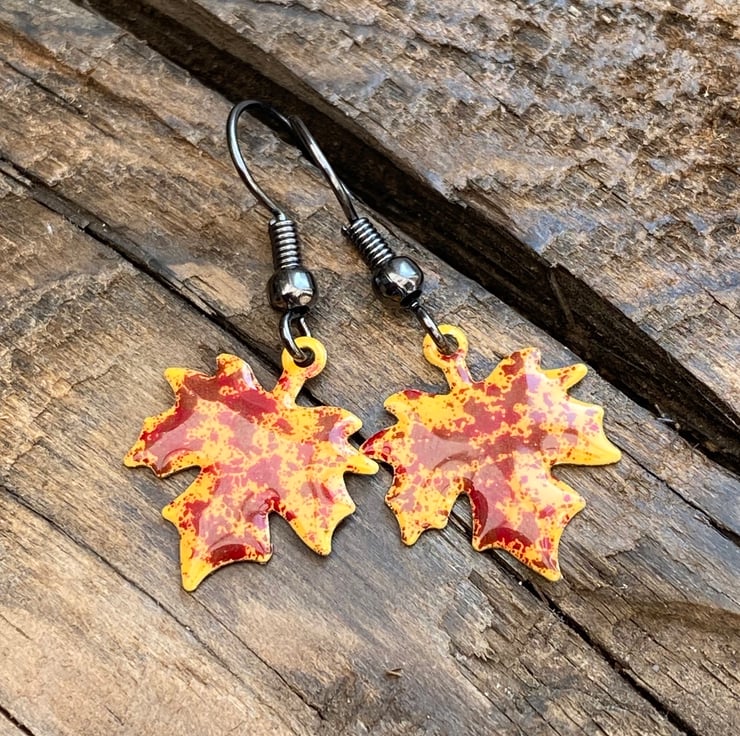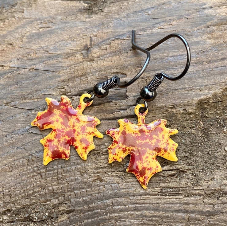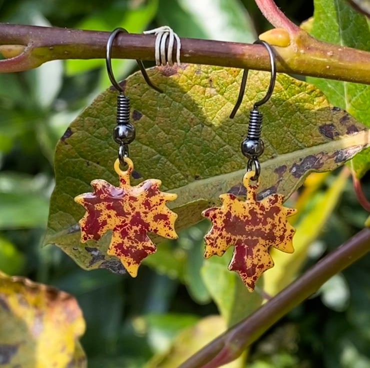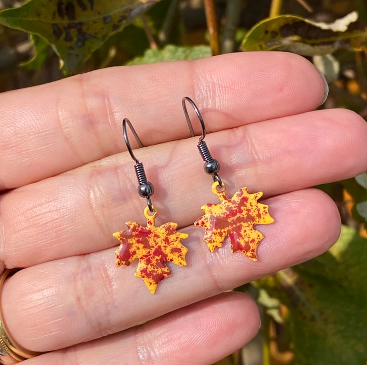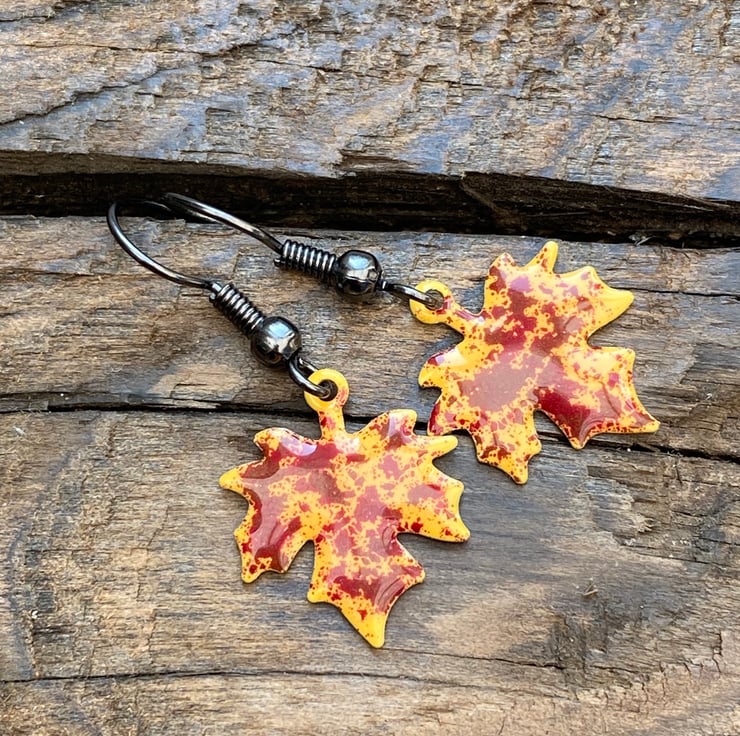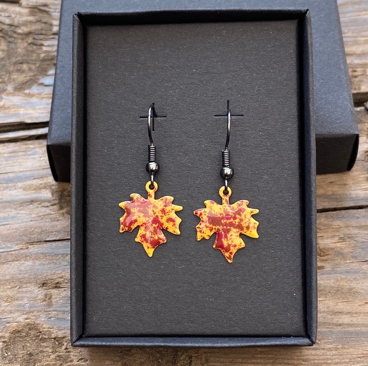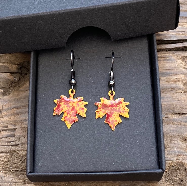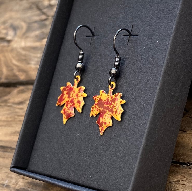 Stand out from the crowd this autumn with a unique pair of hand enamelled maple leaf earrings.