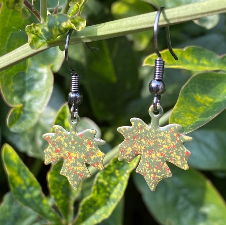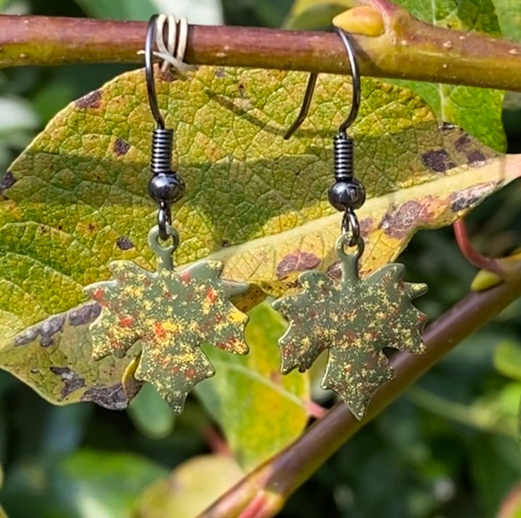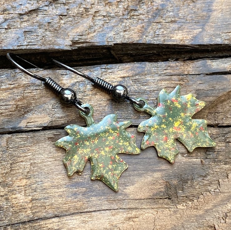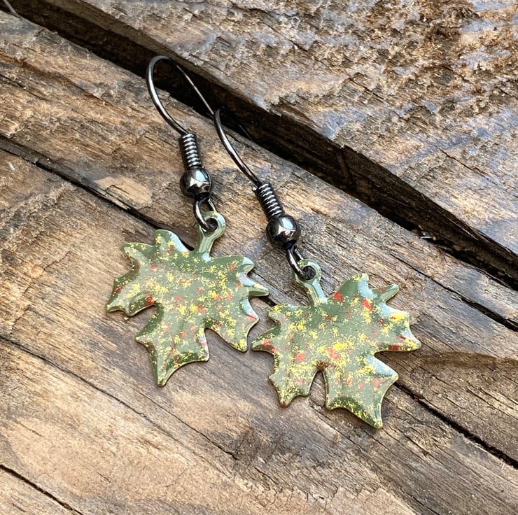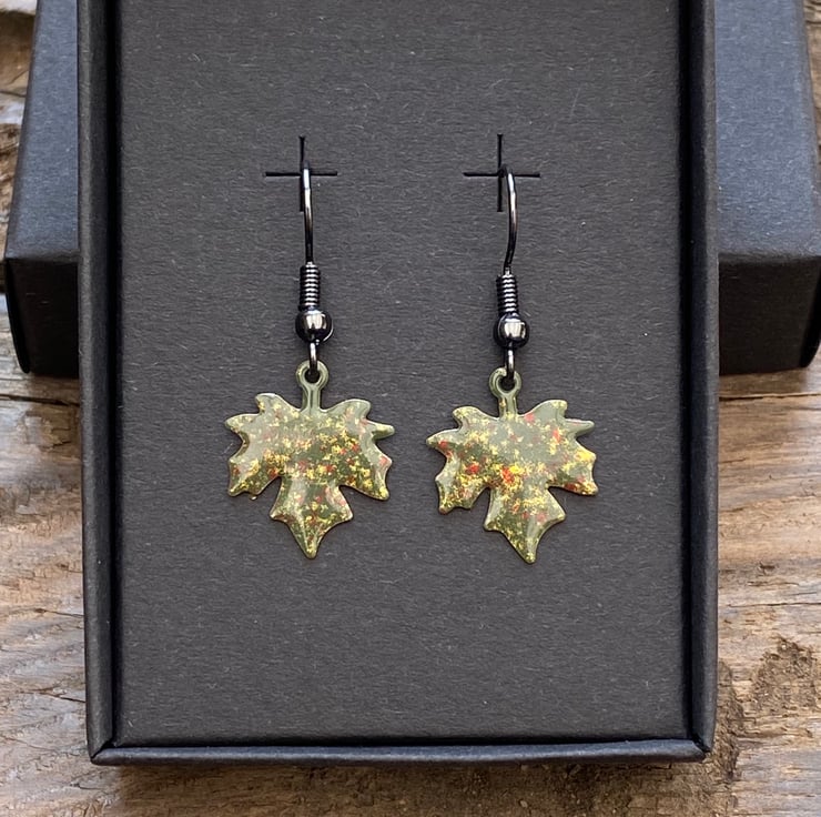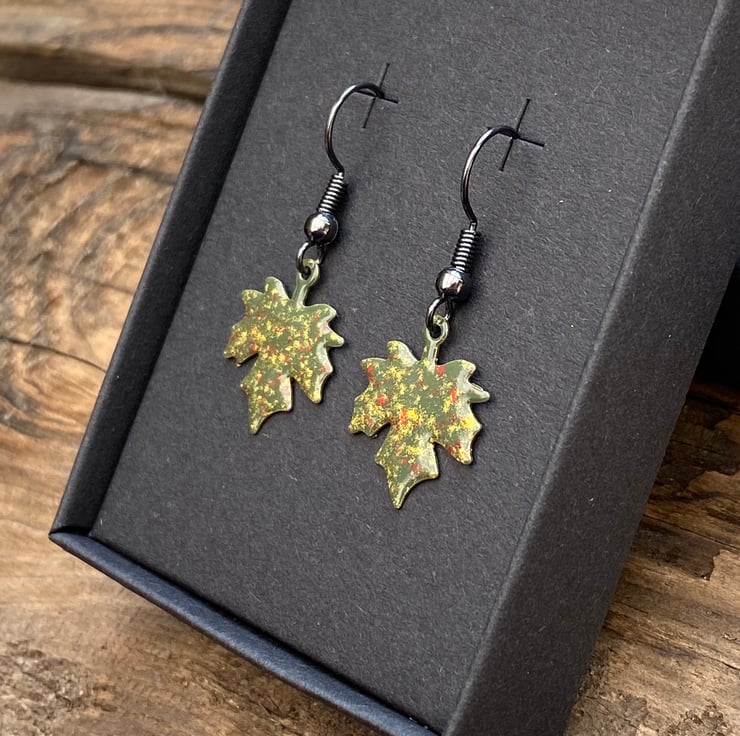 Stand out from the crowd this autumn with a unique pair of hand enamelled maple leaf earrings.