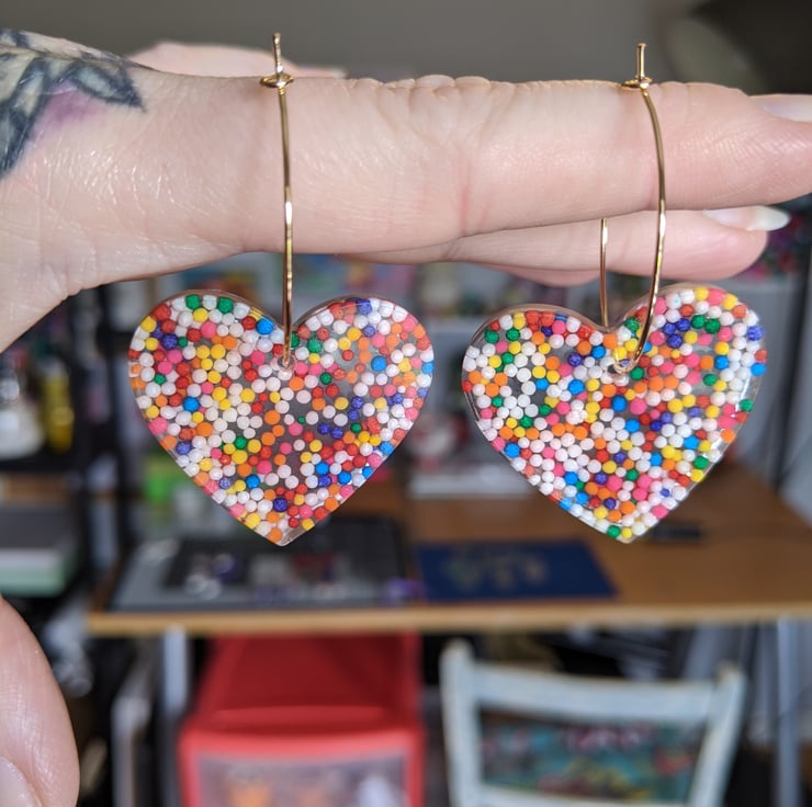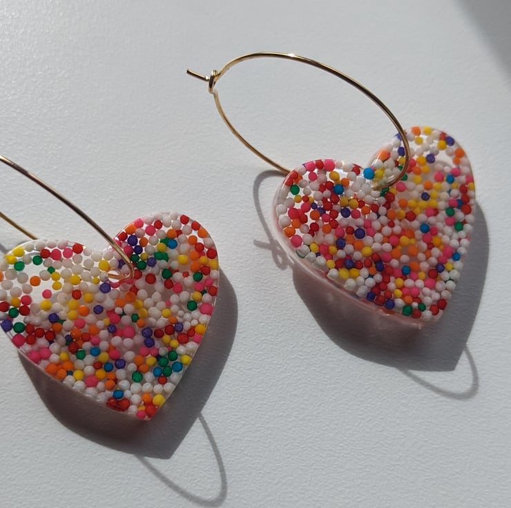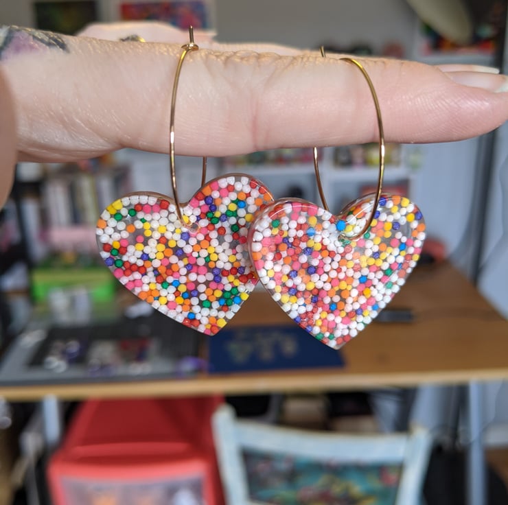 The fabulous sprinkle hearts on a 34mm brass hoop!