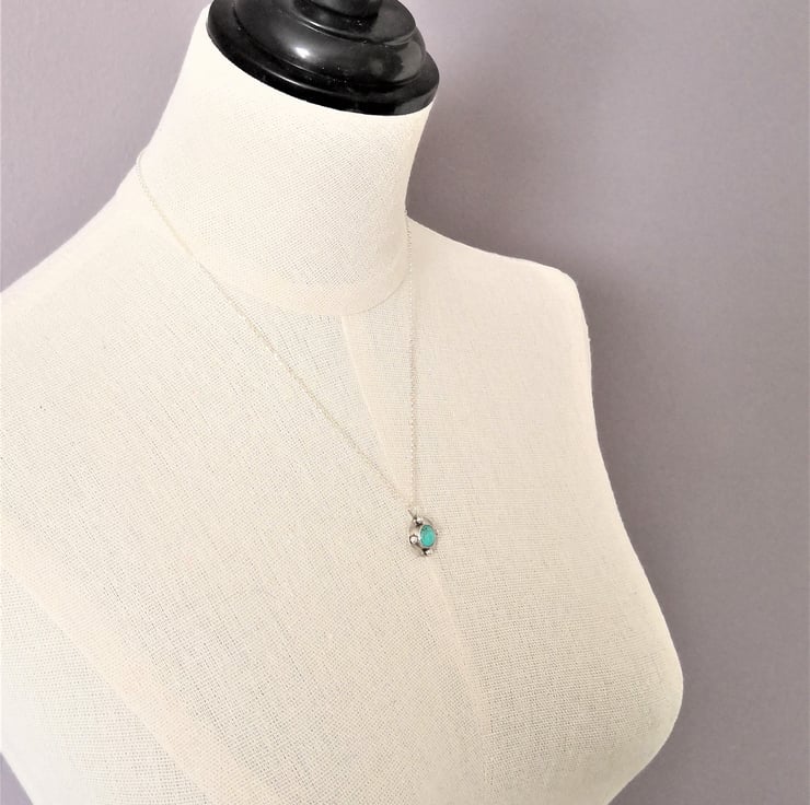 Handmade turquoise pendant in a celtic inspired design made with recycled sterling silver.