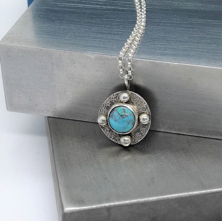 The silver has been textured and antiqued and lets the colour of the turquoise stand out.
