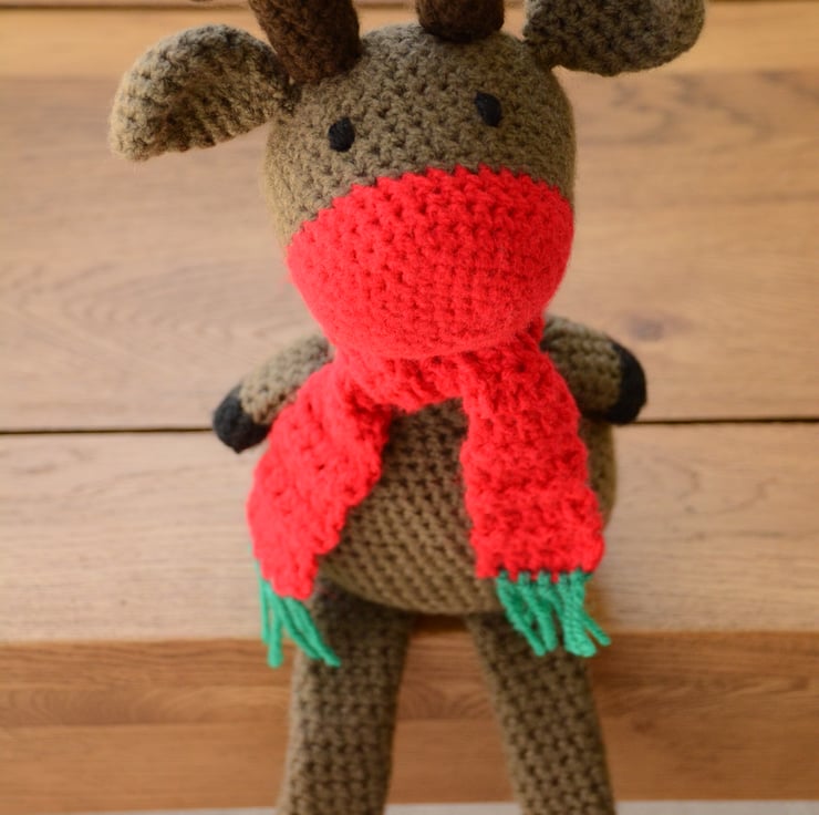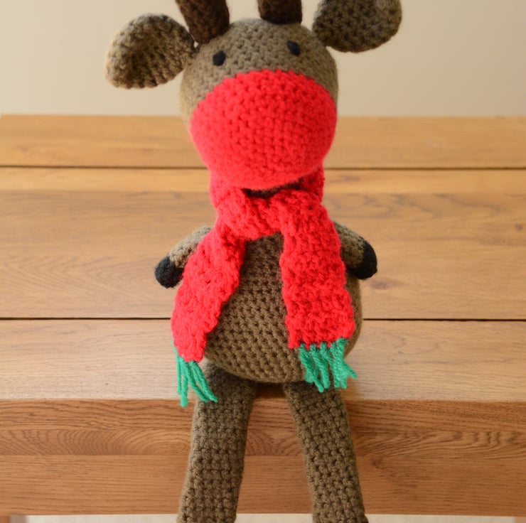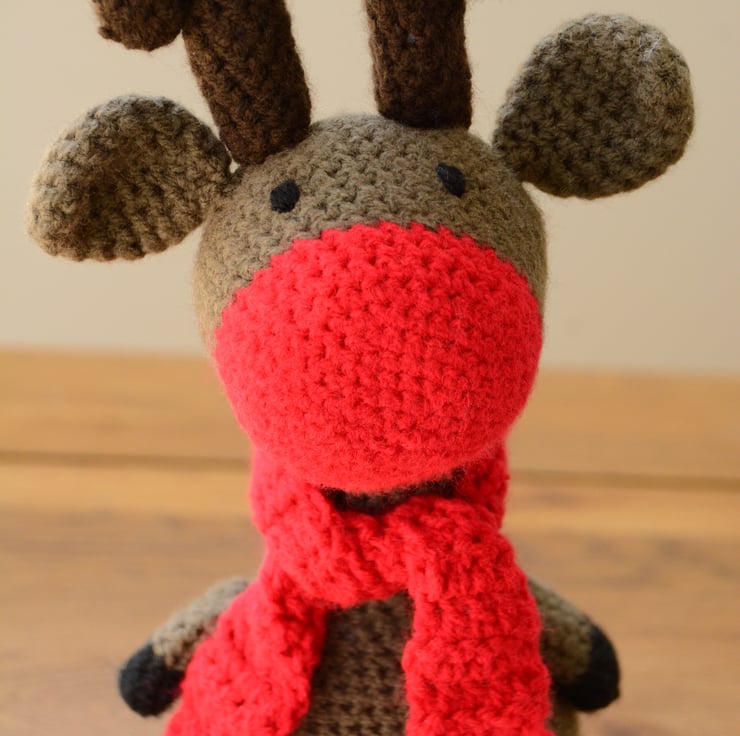 Crocheted reindeer makes a great Christmas decoration to sit on any ledge, whether it’s the mantle piece or shelf.