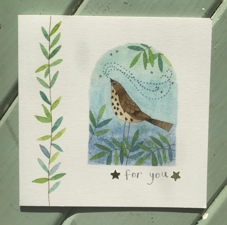 All of the inspirations for my paintings are based on the wonderful and magical things I see whilst out in the woods, fields and hills of the Chilterns. Songthrush was inspired by the early morning chorus.
