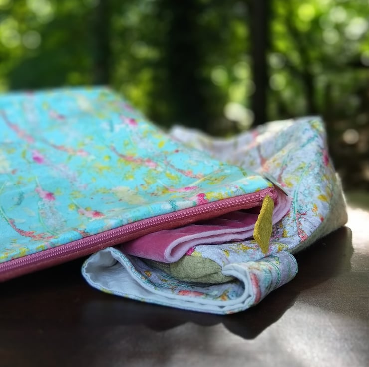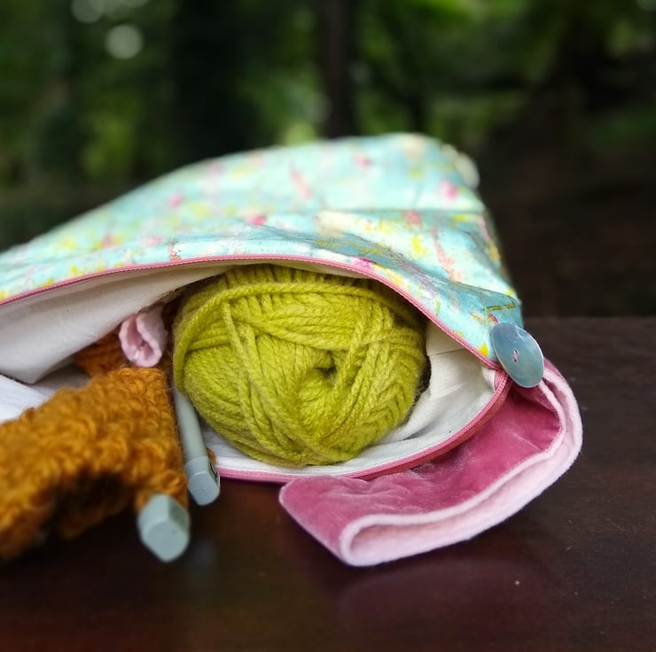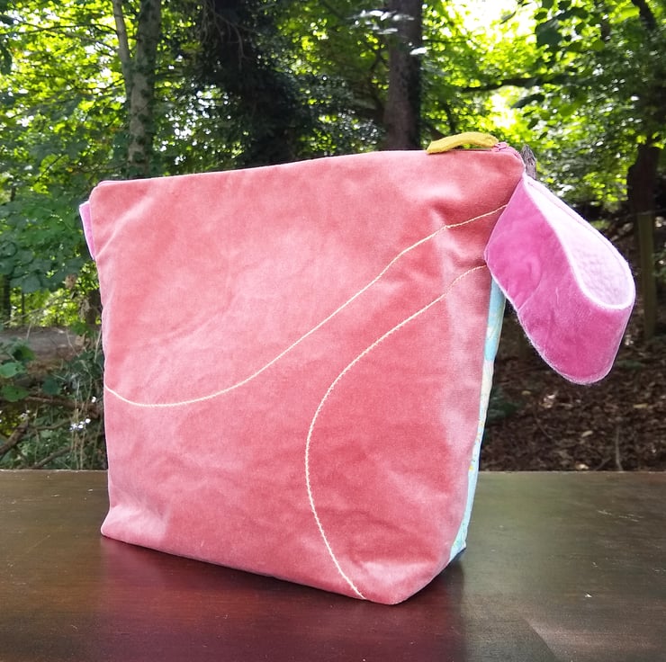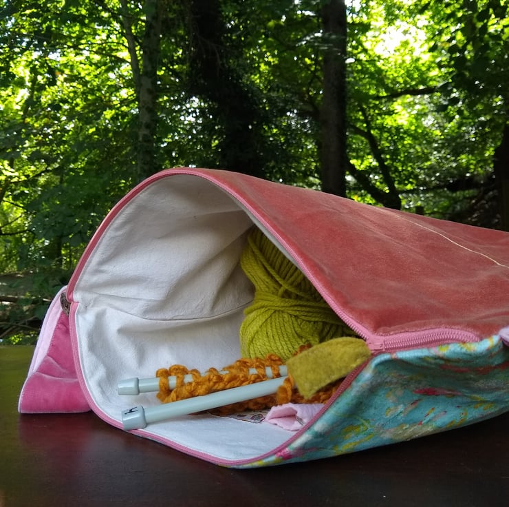 A roomy and sturdy project bag, featuring my 'Sprigs and Twigs pattern, printed by a company in the UK onto shimmer velvet.