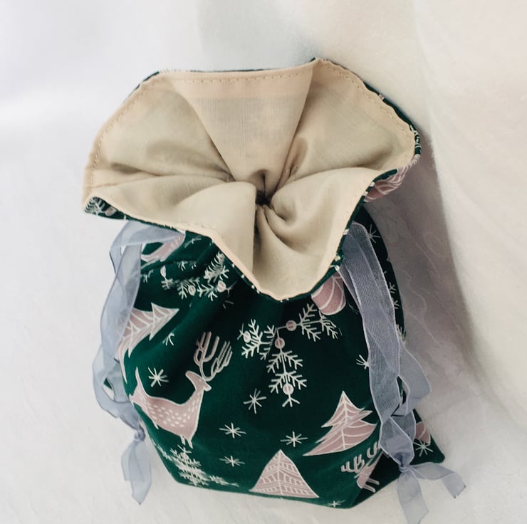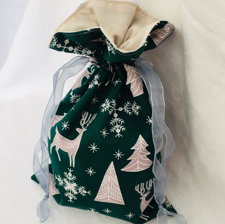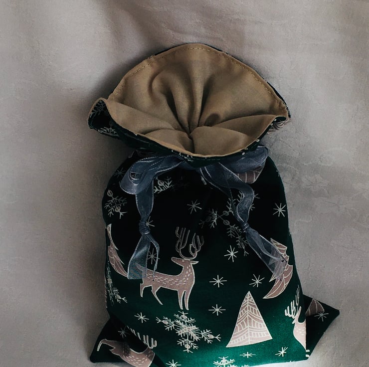 Why not present your special Christmas gift in a beautiful fabric bag, that can be used again and again. A gift inside a stunning bag, that can be reused, 2 gifts in one. Why not use the bag to fill with lots of goodies and treats, or a selection of scented candles and wax melts. A lovely bag for all kinds of uses.