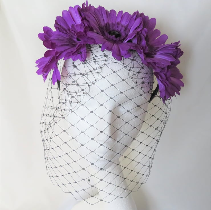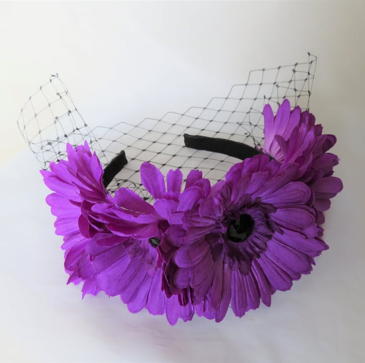 This is a simple and fabulous eye catching artificial flower crown in ultraviolet purple & black.