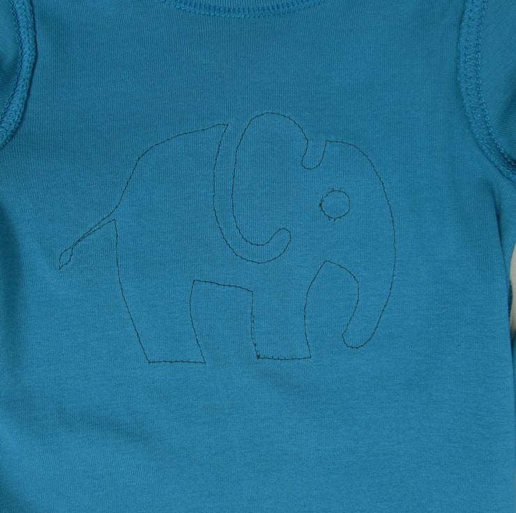Toddlers blue cotton elephant t-shirt featuring hand stitched appliqué navy elephant. I designed and machine stitched the appliqué (on a H&M t-shirt), all the thread ends are carefully sewn in, so there are no itchy scratchy knots. Limited edition only 2 of these made.