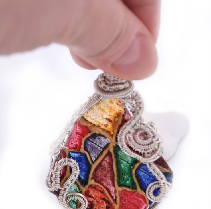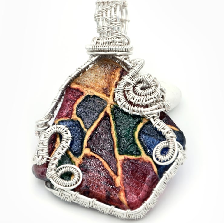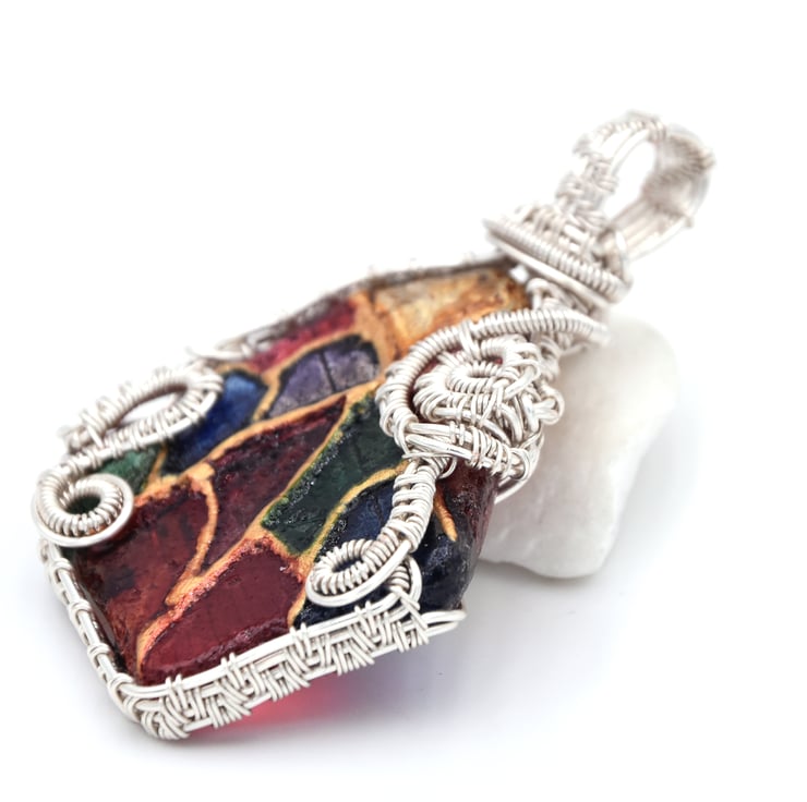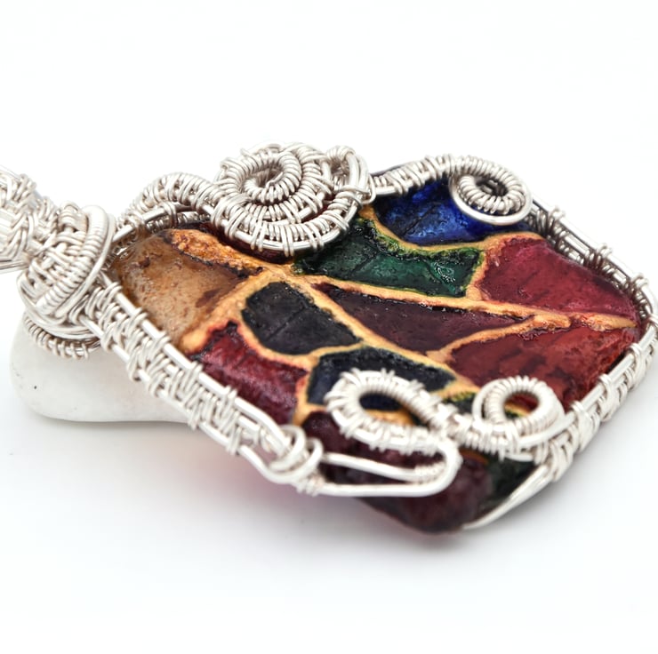 I visited Barcelona in February 2020 and was inpired by the beautiful mosaics in the Gaudi gardens and by the stained glass in the Sagrada Familia. All the seaglass in this series is from the shores of Barcelona; hand picked by me and painted to resemble the stained glass.