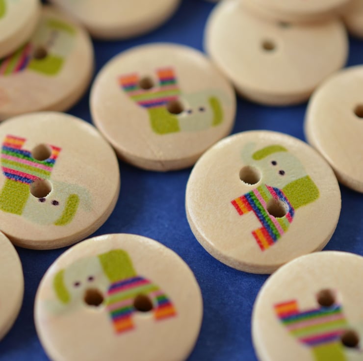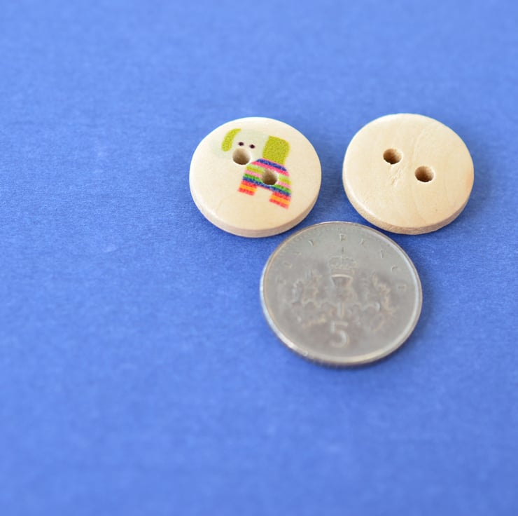 15mm Wooden Rainbow Elephant Buttons 10pk Kids Buttons (SAN5)