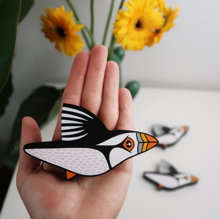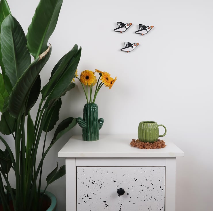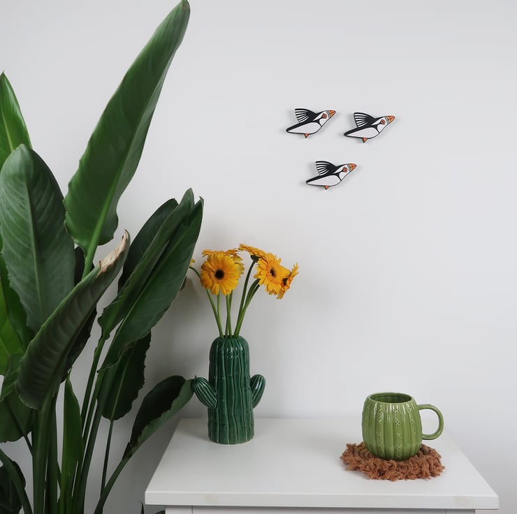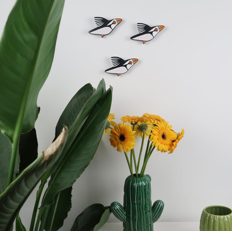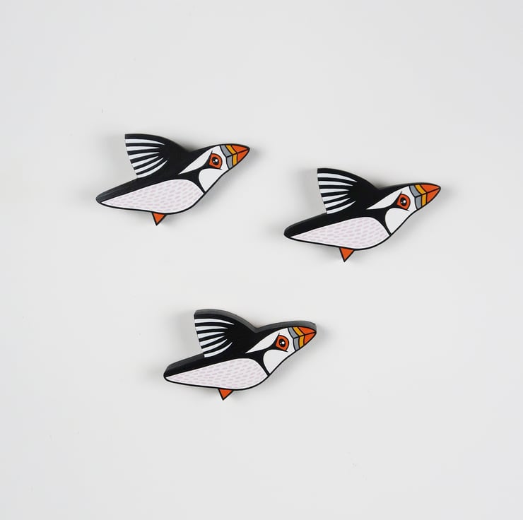 PUFFIN wall art. Set of 3 miniature birds.