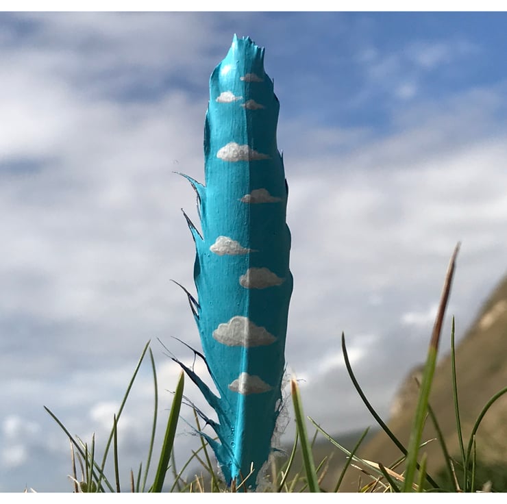 A feather being a thing of the sky, how could I not paint the sky on one?