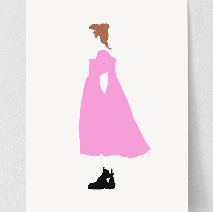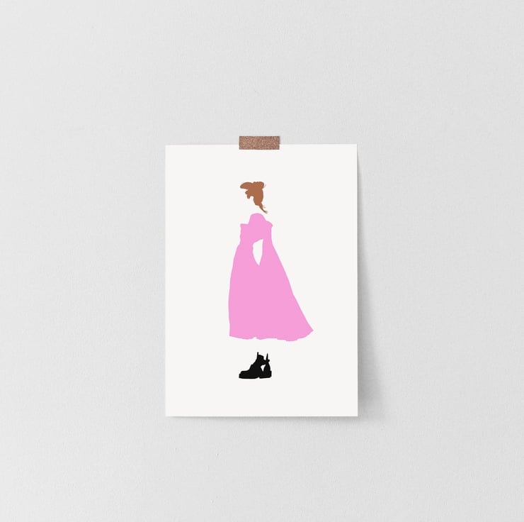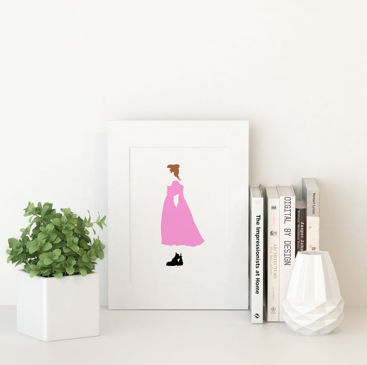 I loved the simplicity of the outfit, the three items, top knot, dress and boots. I was immediately struck by how well they'd work as a minimalist image and so set about creating one with the help of my artist husband who drew the image and then I converted it to a digital file.