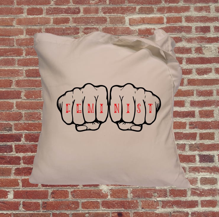Feminist in a tattoo font across the knuckles