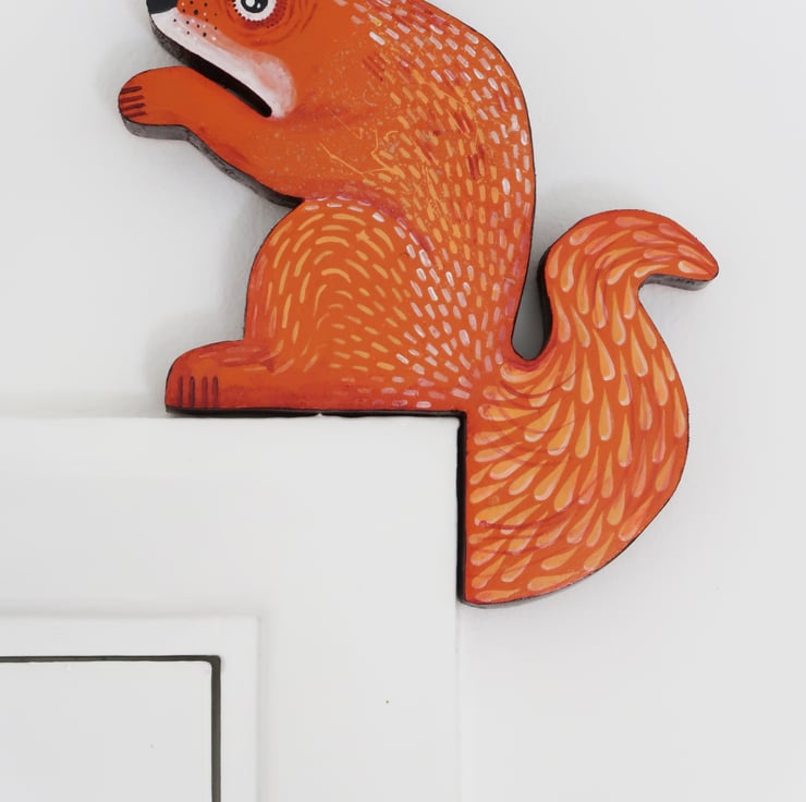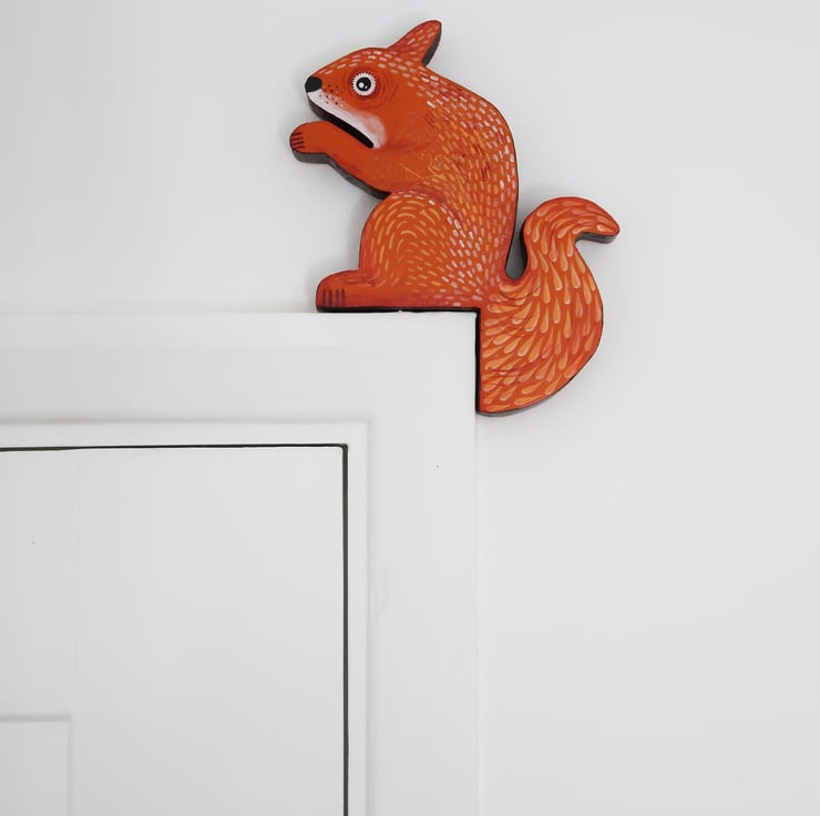 Squirrel door topper, autumnal home decor, animal decoration for door frame.
