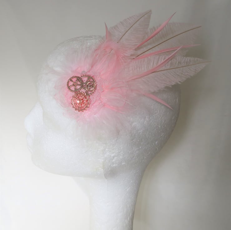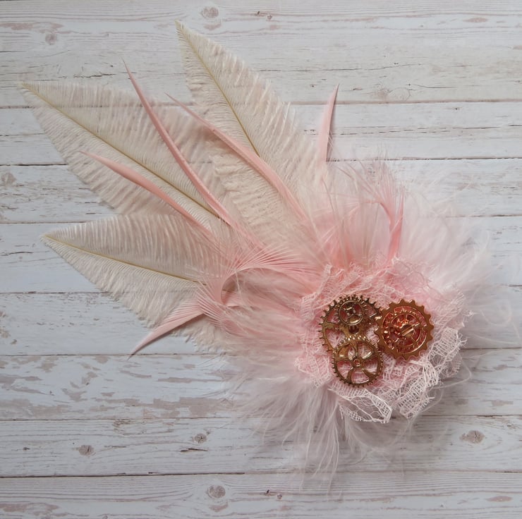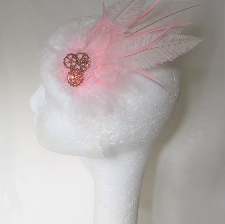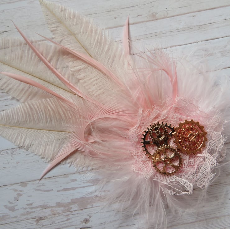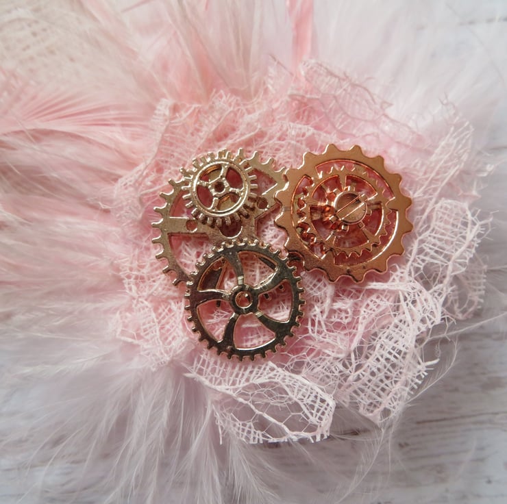 Finished with a blush pink lace ruffle with a detail of mixed sized rose gold Steampunk cogs & gears.