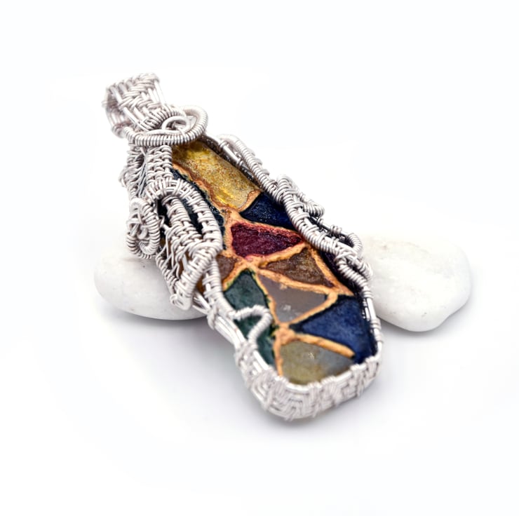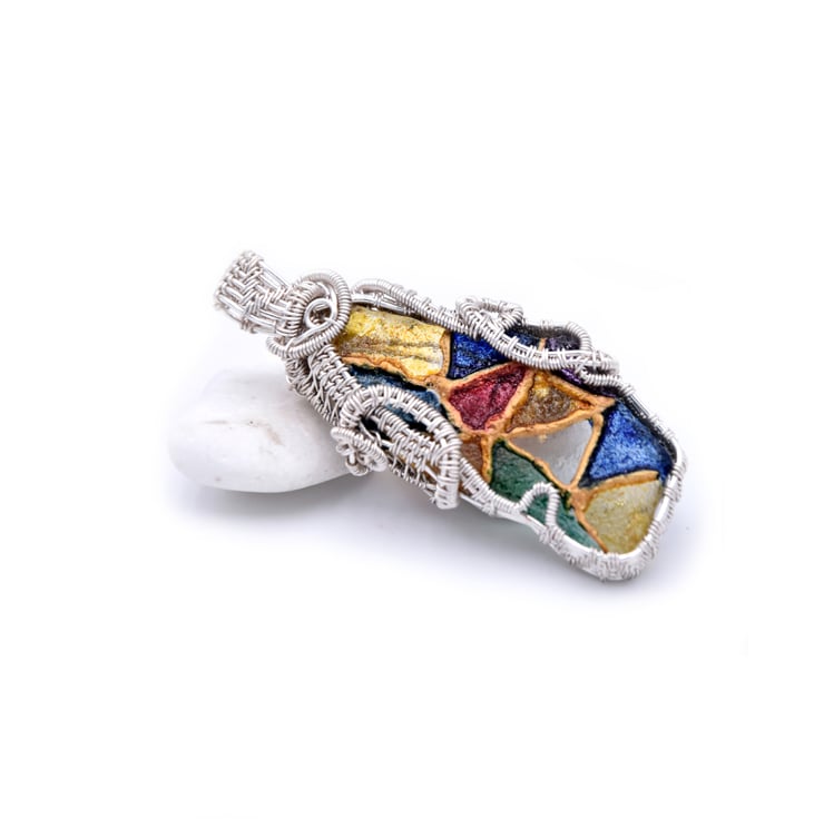Simple and elegant sea glass pendant; hand painted to resemble stained glass.
