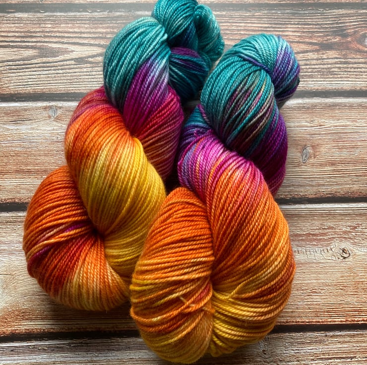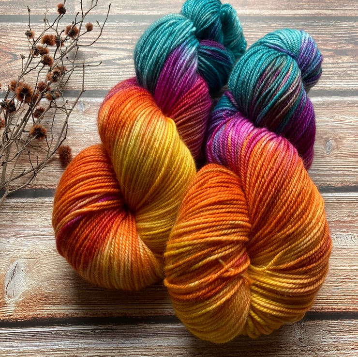 Dyed in my forever autumn colours, navy, magenta, brown, orange and yellow.