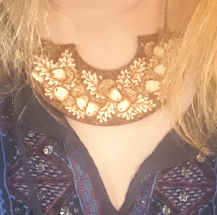 The pendant sits pretty much on the collar bone, so isn't as 'loose' as it looks on the bust. (Last photo is of me wearing a necklace of the same size that I made for myself to show the size and fit!)