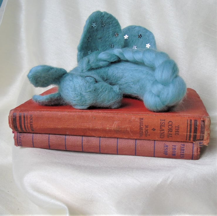 Needle felting is a wonderful medium to create my mythical creatures. They can be all shapes and colours. I can let my imagination run wild. I