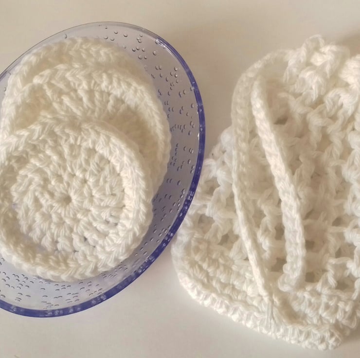 This little set includes 3 reusable make-up remover pads (also known as Face Scrubbies) and a soap saver pouch.