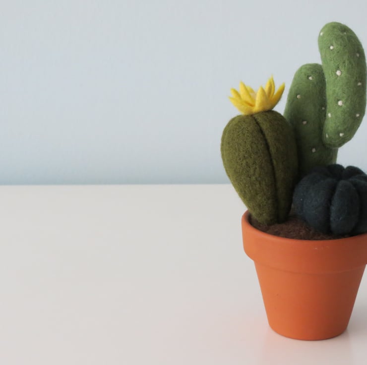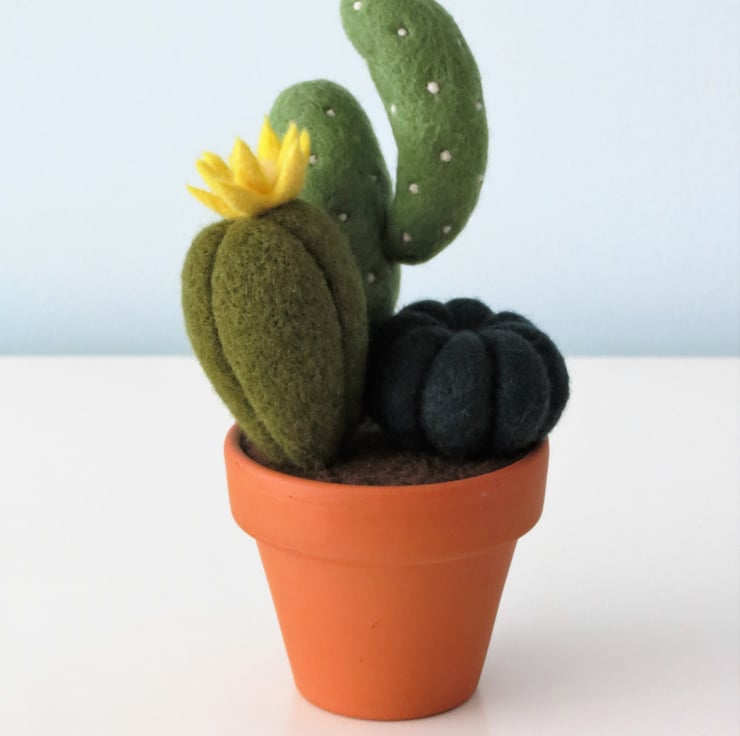 Set in a 100% terracotta clay pot, we carefully, needle felt a unique design from 100% Merino Wool. This labour intensive method takes many hours to produce a fuzz free, firm piece that we hope you will enjoy for many years.