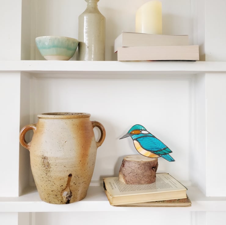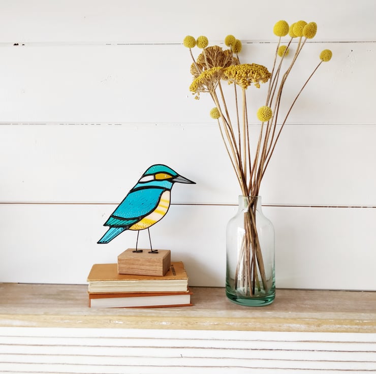 Beautifully illustrated and handcrafted in stained glass this little suncatcher would make a gorgeous, fun addition to any home. Whether displayed on your favourite shelf or shinning bright in front of your window. This little bird is a great way to introduce some colour and create a more contemporary, curated space within your home.